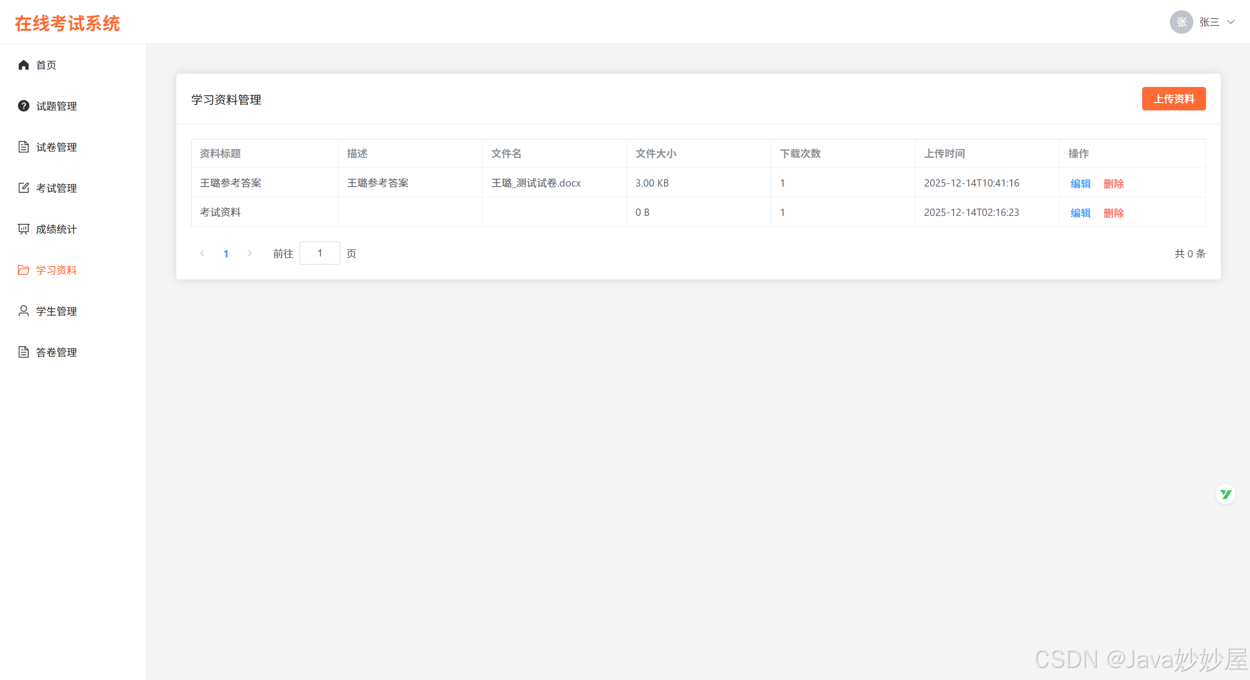 ✅ 学习资料上传(支持文件上传,自动保存文件名和大小)