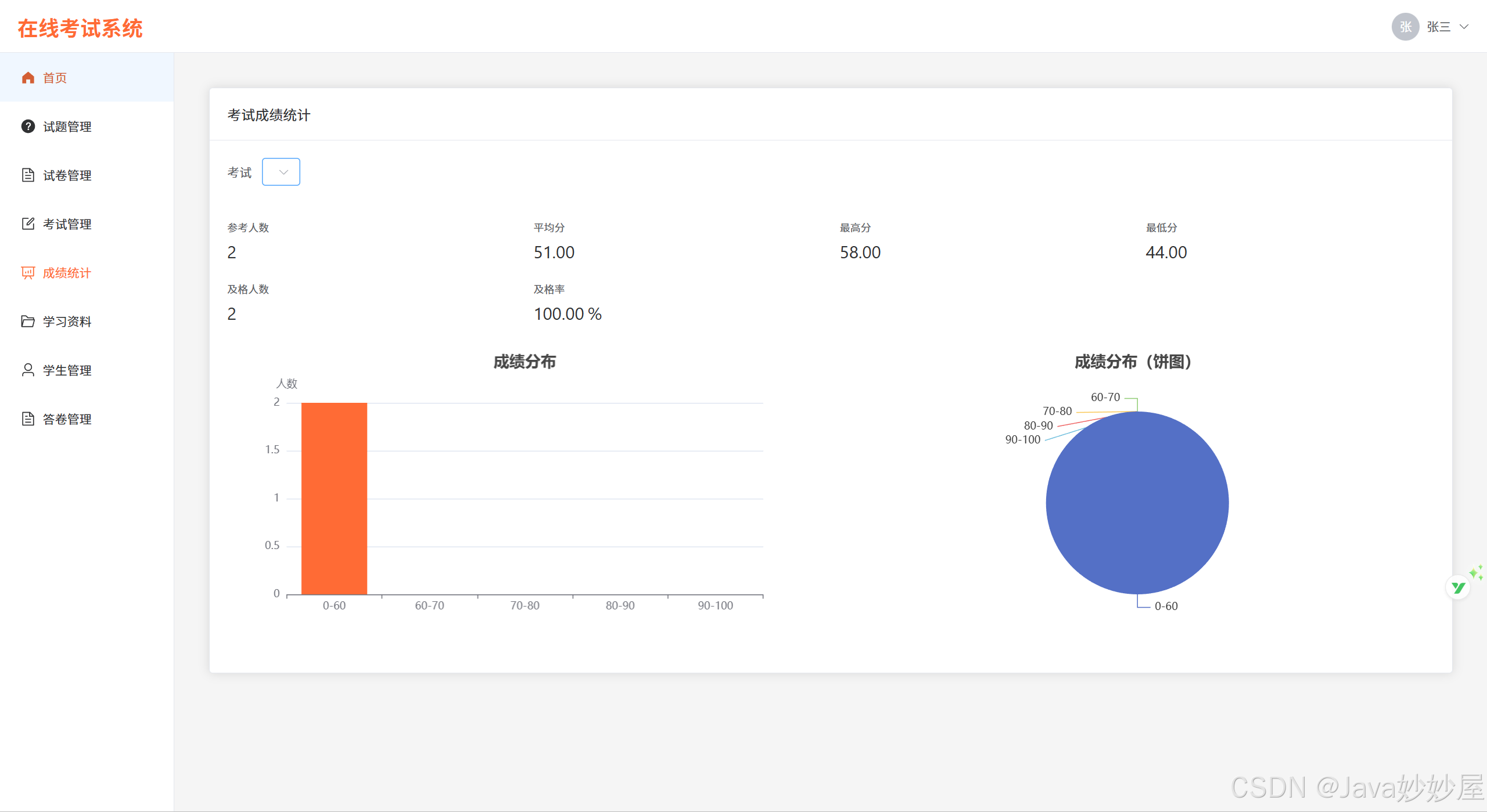 ✅ 系统统计(用户统计、试卷统计、考试统计,ECharts图表)