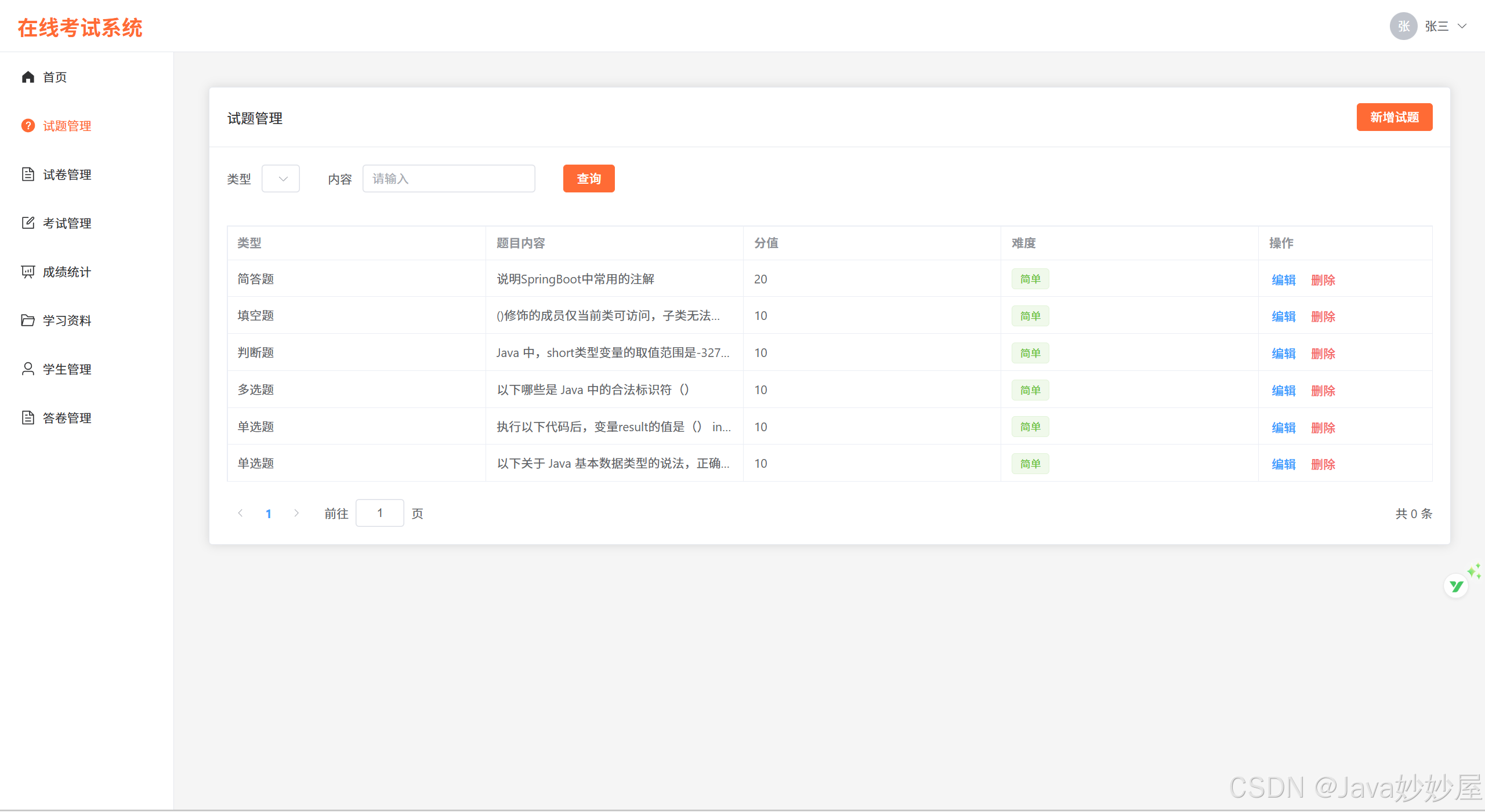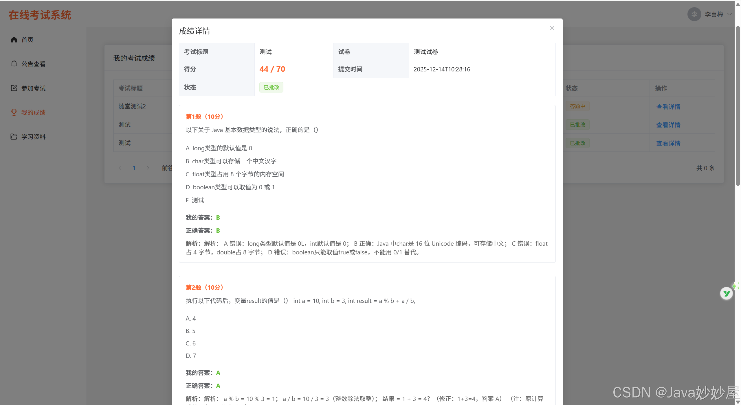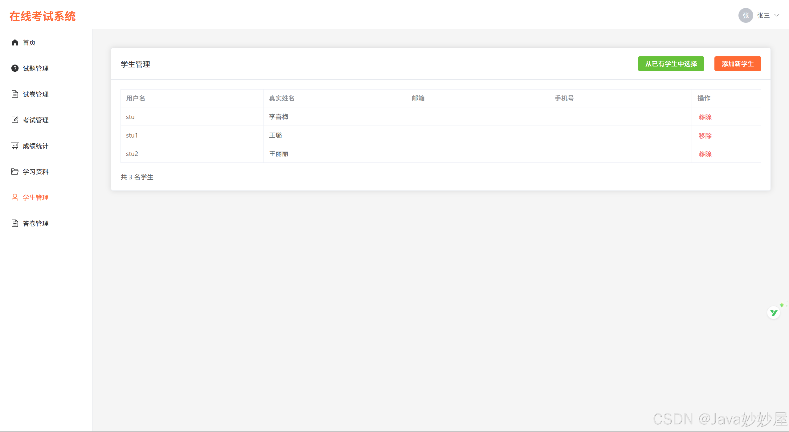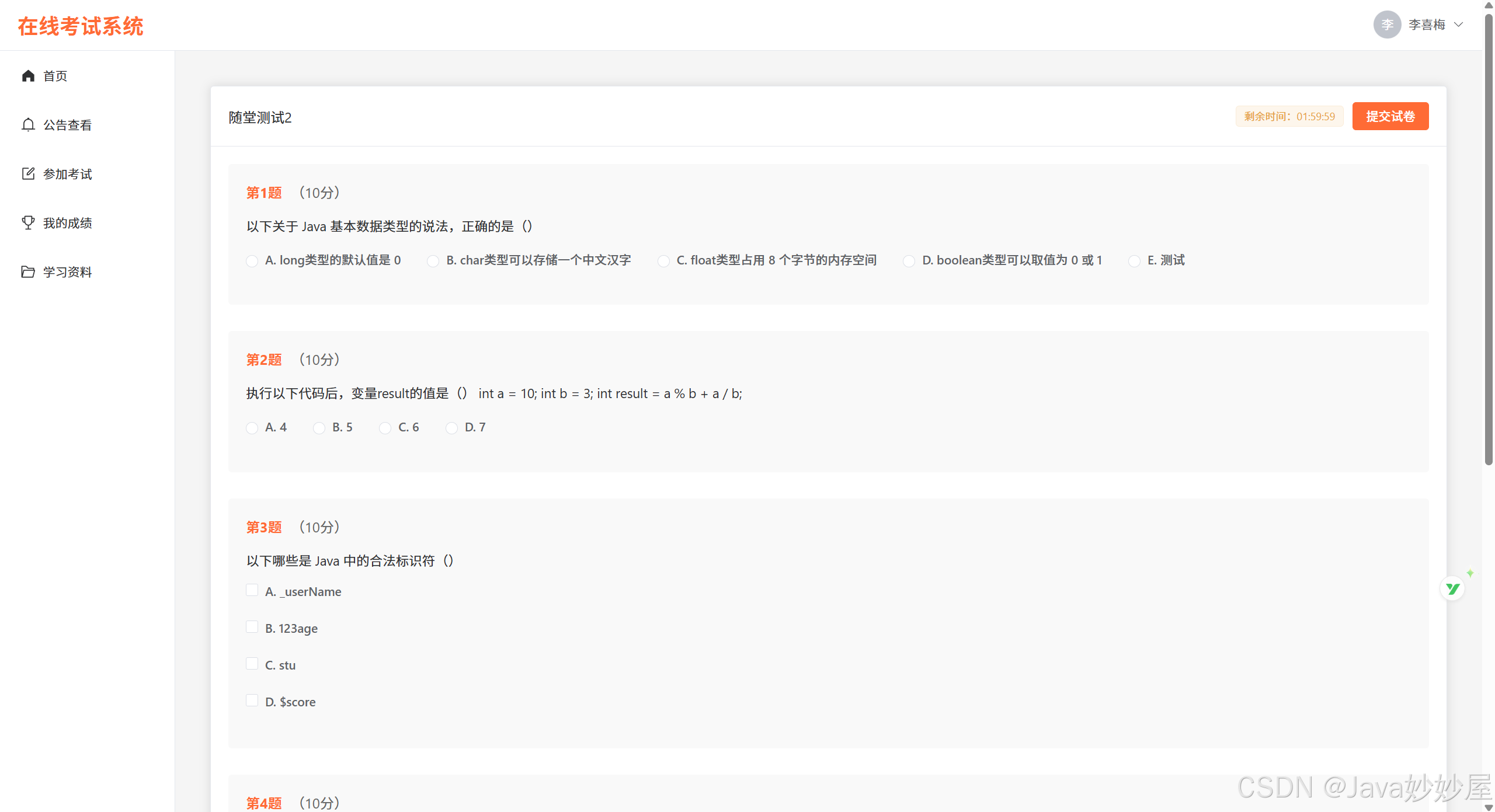 基于 Spring Boot 3.1.5 + Vue3 的在线考试系统,支持管理员、教师、学生三种角色。''