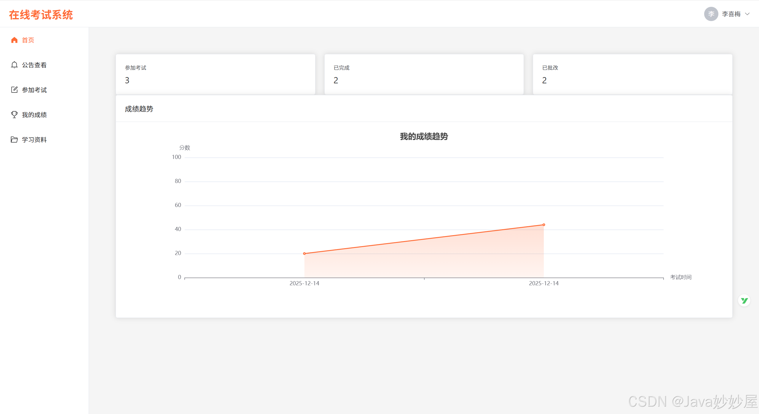 ✅ 学习统计(考试统计、成绩趋势,ECharts图表)