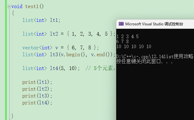 list<int> lt2 = { 1,2,3,4,5 };