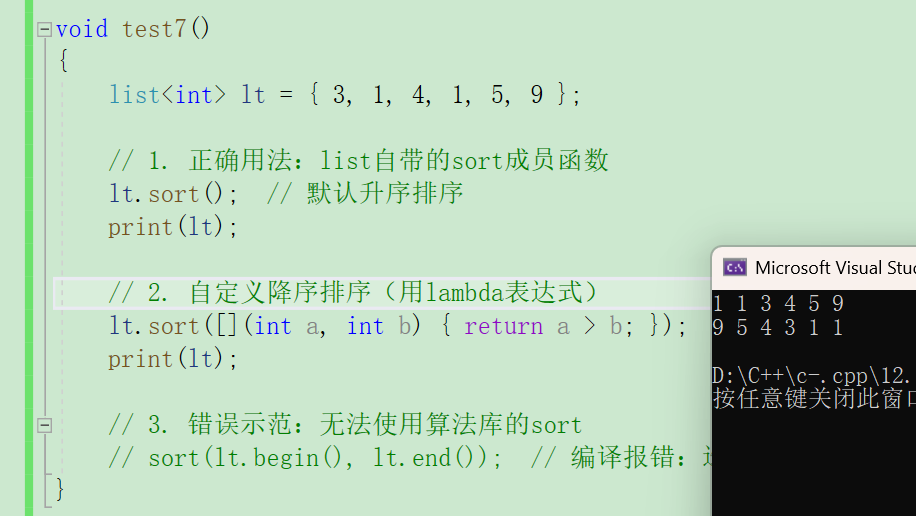 // 1. 正确用法:list自带的sort成员函数