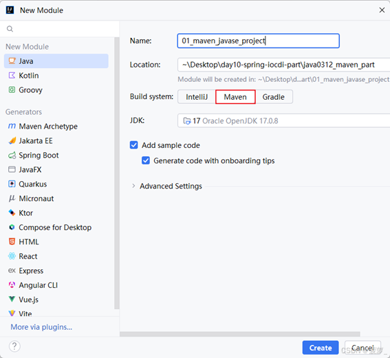打开IDEA,点击"File→New→Project",选择"Empty Project",输入项目名称(如"MavenSEDemo")和存储路径,点击"Create"。