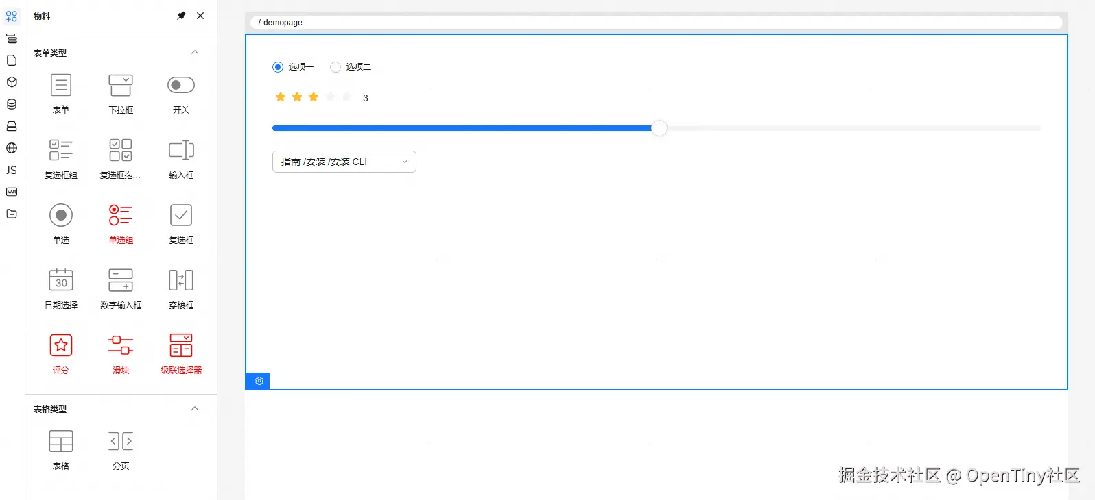 表单类型中新增单选组、评分、滑块、级联选择器 组件