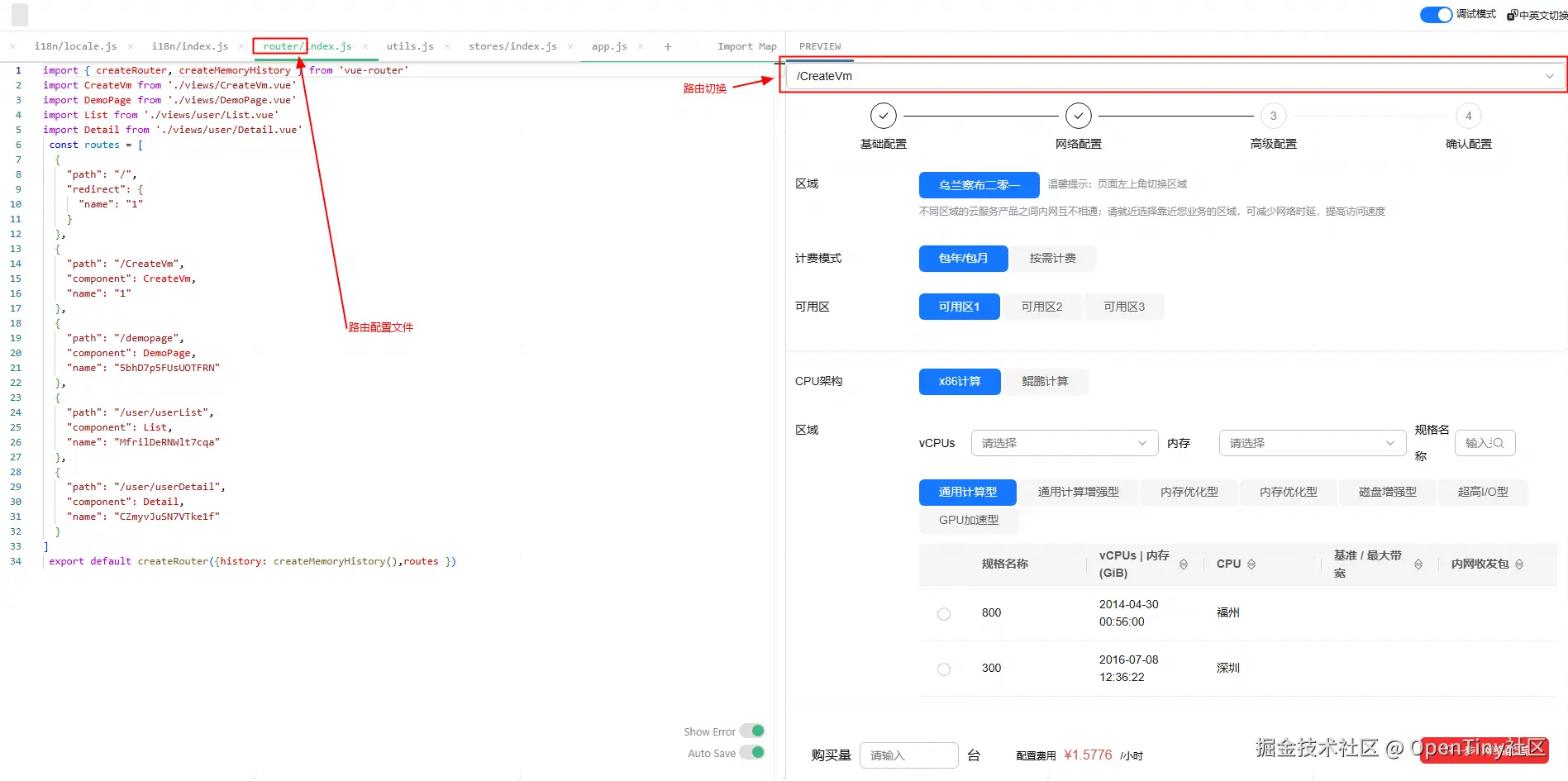 打开预览页面后,可以看到应用预览与页面预览相比添加了路由切换栏,可以选择路由进行切换。