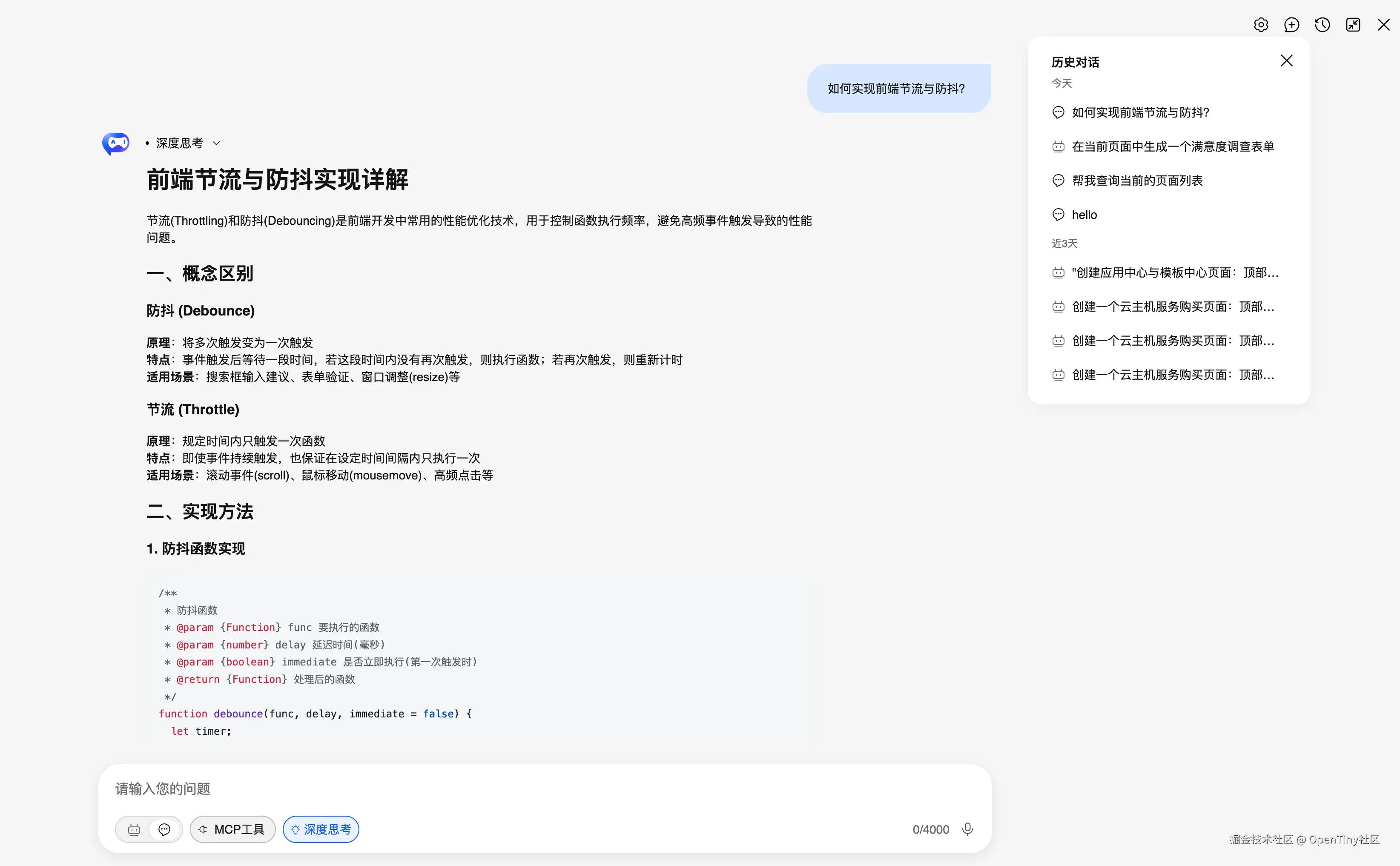 - 会话管理:支持查看管理多个历史对话,自动保存历史记录思考模式:支持推理模型的深度思考,提供更准确的解决方案