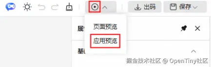 工具栏的预览图标进行了调整,直接点击图标与之前逻辑一致为页面预览,点击后面的箭头可打开下拉列表,可以选择应用预览