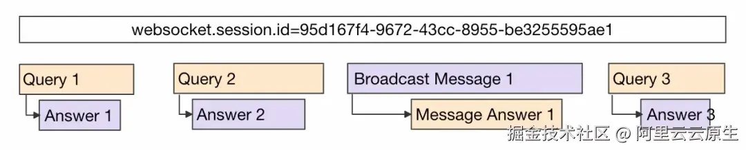 而在 1.1.3 节我们了解到,一个 WebSocket 数据帧其实仅由数字节的控制位和数据载荷构成。除建立连接时握手以外,没有其他的机会传输 header 这些元数据。因此,传统 OpenTelemetry 的 W3C 链路上下文无法直接植入每个数据帧中。而在实际应用场景中,对于一次 WebSocket 连接,往往并不代表仅一次 WebSocket 调用,仅依赖建立连接时的 HTTP 请求与响应是远远不够的。同时,这也牵扯出第二个困难------Span 作用域界定模糊。