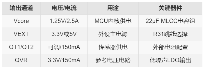 (1)顺序上电控制:内核1.25V优先启动,外设电源延迟开启,预稳压MOSFET(BSL606SN)