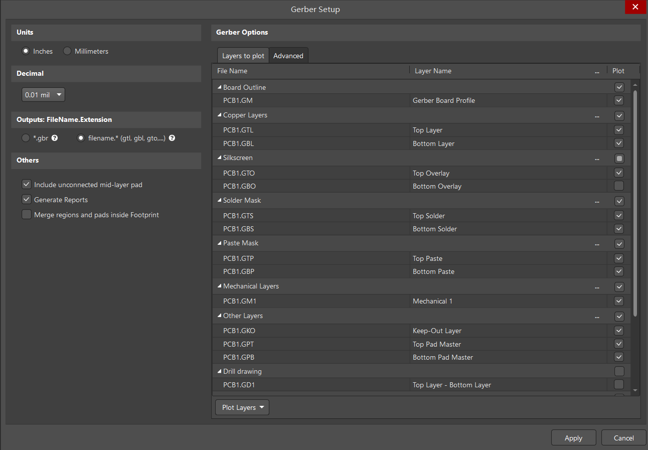 我们切换单位为inches,在plot layer中切换为使用的层。