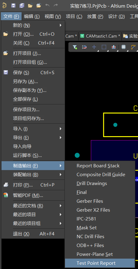我们点击制造输出-test point report。