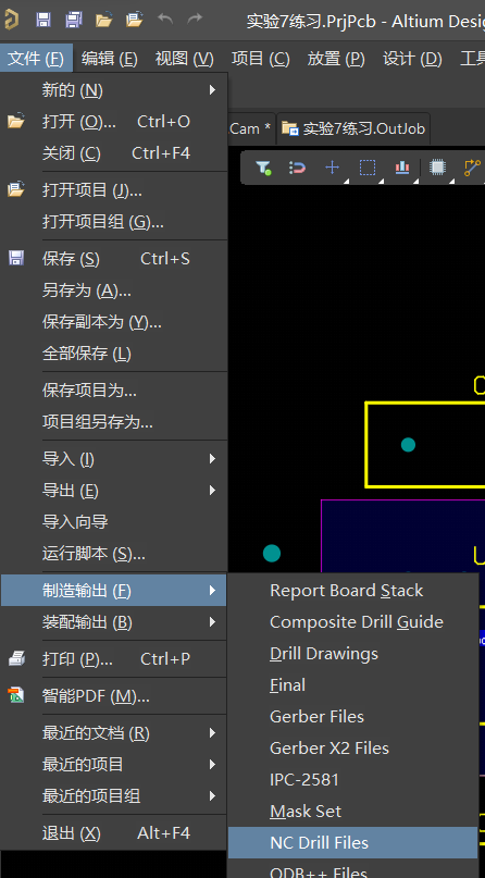 接着,我们输出第二个文件,点击文件-制造输出-NC Drill files