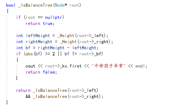 cout << root->_kv.first << "平衡因子异常" << endl;