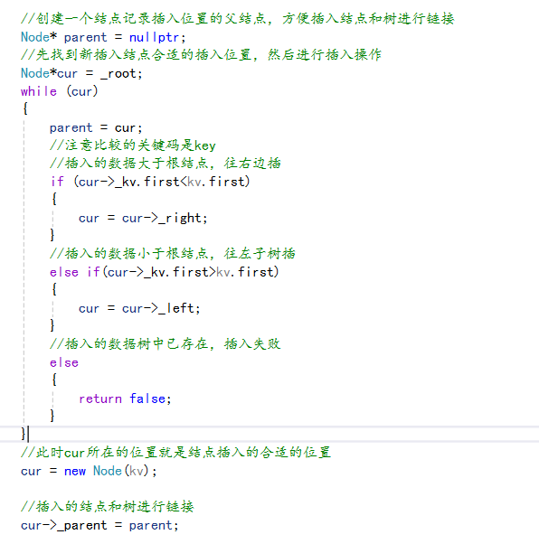 然后数据的插入逻辑和前面学习的二叉搜索树是一样的,将插入的结点的数据从根结点开始比较,要是插入的数据大于根结点的数据,那么我们就往右边子树继续找合适的插入位置。