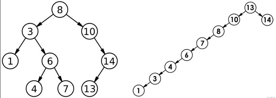 右边的单支或者接近单支的情况就会导致查找的效率变得很低。