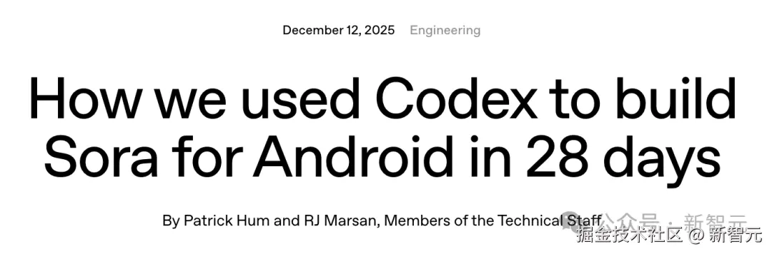 「【新智元导读】OpenAI 爆款 APP,只动用了四员悍将。他们在短短 28 天内,完成了从 0 搭建安卓版 Sora。这背后,竟是 AI 完成了 85% 的编码。」