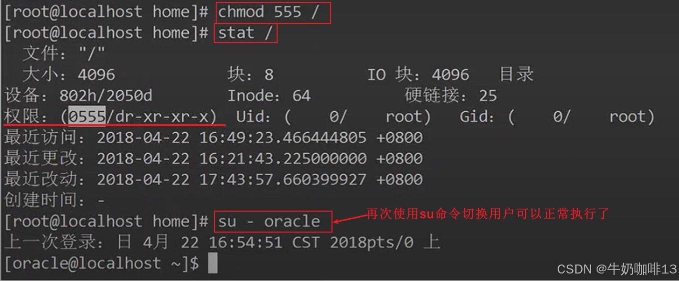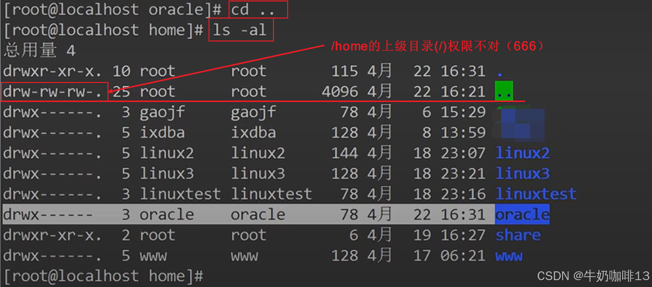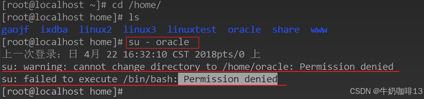 直接提示"su: warning: cannot change directory to /home/oracle: Permission denied. su failed to execute /bin/bash:Permission denied"。