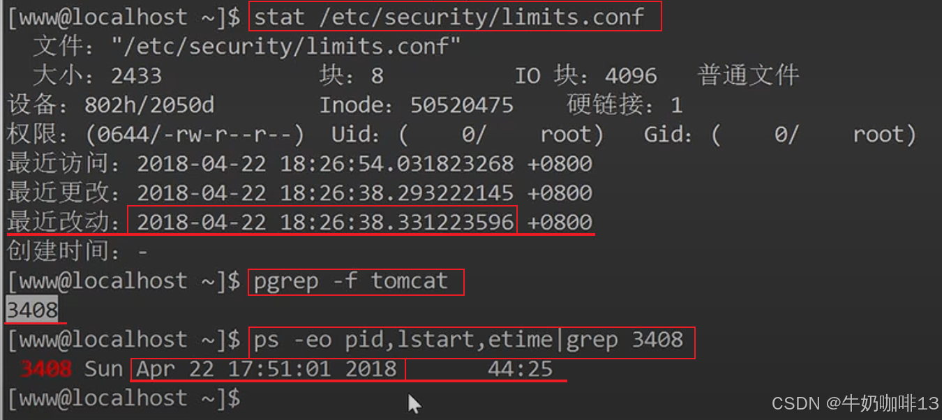 《4》查看【/etc/security/limits.conf】配置修改的时间与【tomcat】程序启动的时间来确定生效情况。