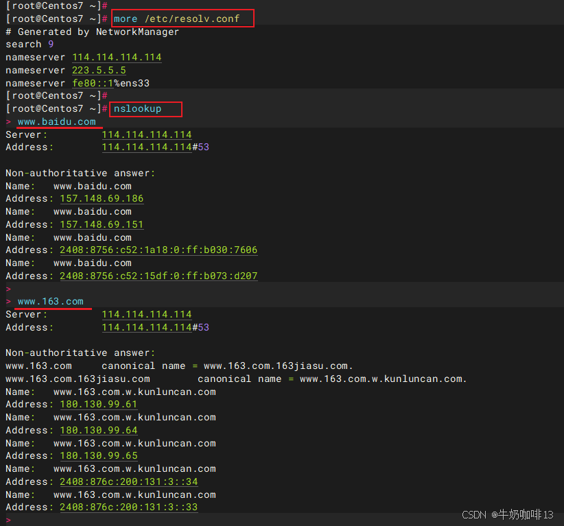 注意:【NetworkManager】服务会自动管理DNS解析文件(即:体现在在DNS配置文件配置了内容重启后配置的内容会丢失,不生效)。