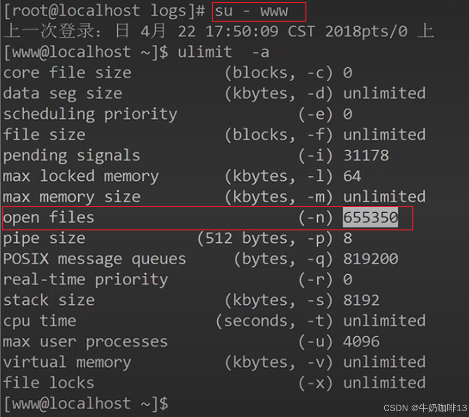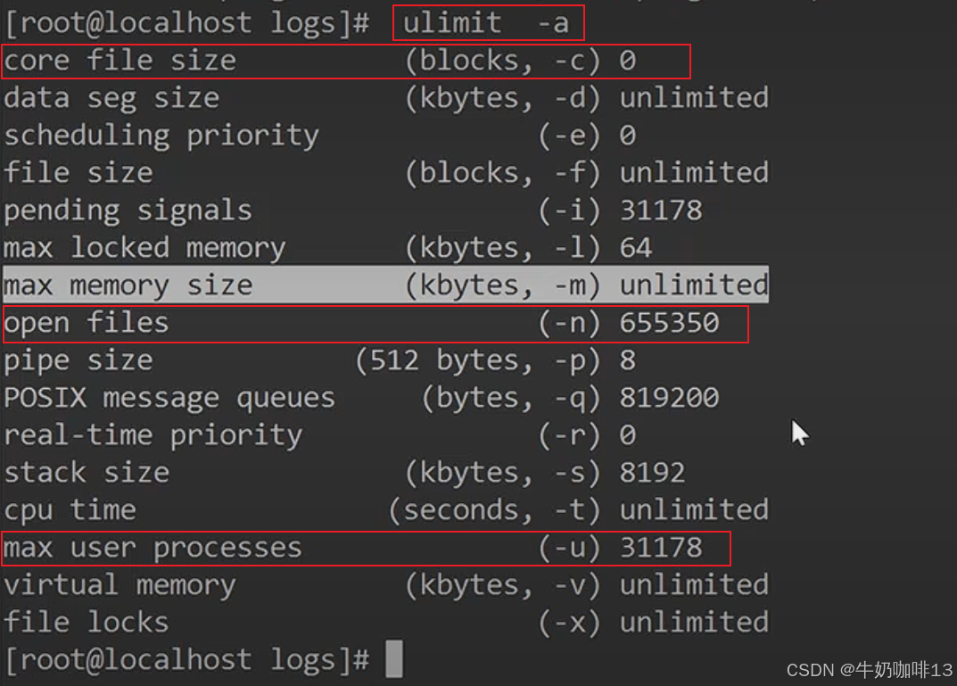 《3》针对资源问题首先想到的就是ulimit(ulimit主要是用来限制进程对资源的使用情况的,它支持各种类型的限制)【资源限制的配置文件是【/etc/security/limits.conf】】(注意:若在【/etc/security/limits.conf】里面设置了进程数,在centos系统中还要查看【/etc/security/limits.d/ 20-nproc.conf 】是以这个文件的为主)。