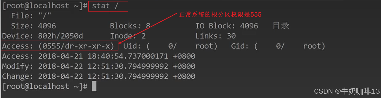 #定位到问题是由于根目录的权限不对导致的,因此需要将根目录的权限修改与正常系统的一致即可