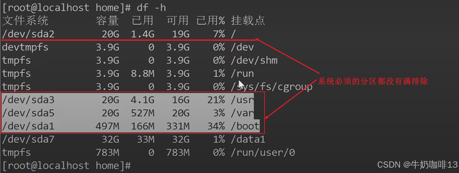 #5-系统根空间问题(【/】【/boot】【/usr】【/var】空间是否已满);