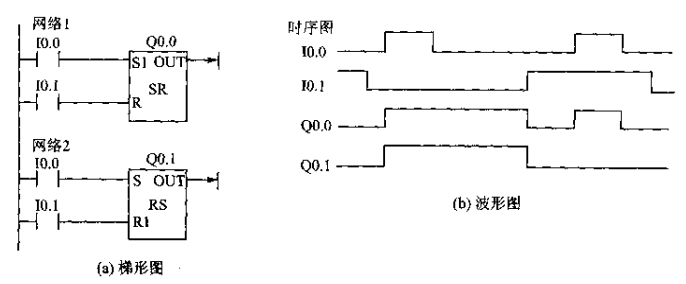 核心区别一句话 :在置位和复位同时 有效的情况下,SR指令输出"1",RS指令输出"0"。
