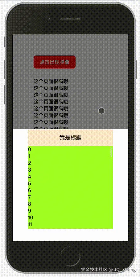 - 当你在弹窗上滑动手指时,底下的背景页面竟然跟着一起滚动了!