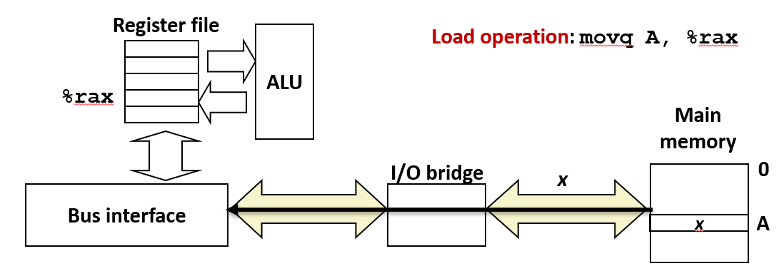 movq %rax, 8(%rsp) - 读操作(Load):将数据从内存传输到CPU。示例指令: