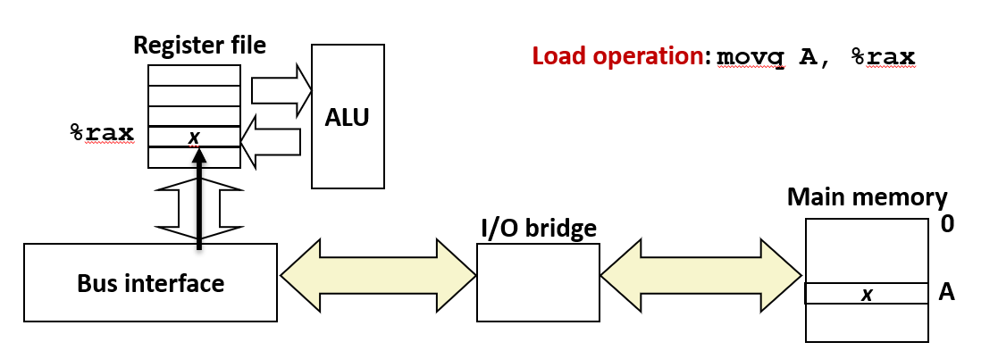 - CPU从总线读取字x,并复制到寄存器%rax中