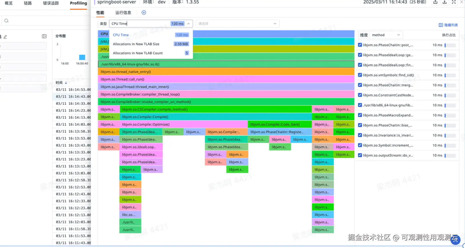 - 低开销和高效压缩:确保在生产环境中进行性能分析时对应用程序的性能影响最小。