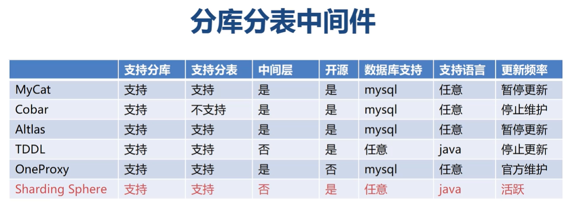 目前常见的分库分表中间件有以下几种: