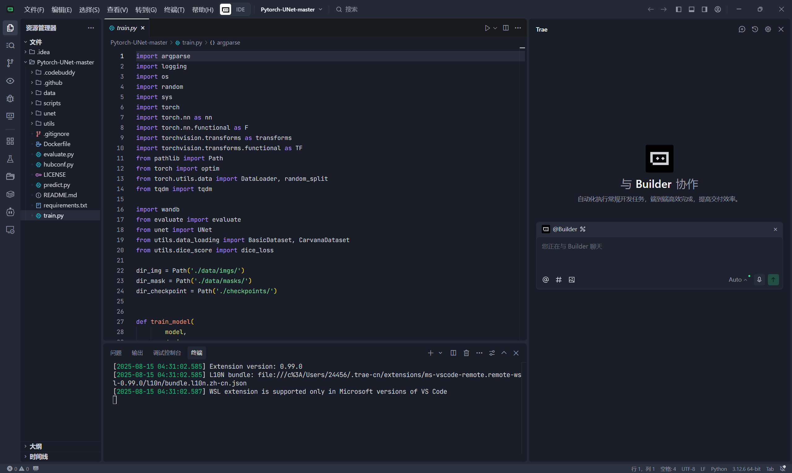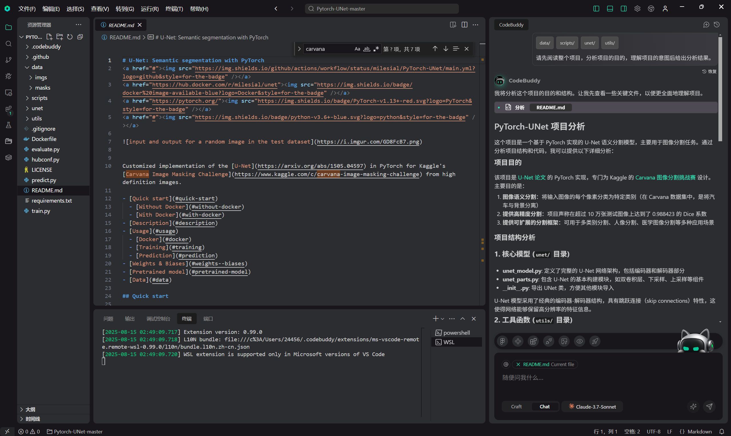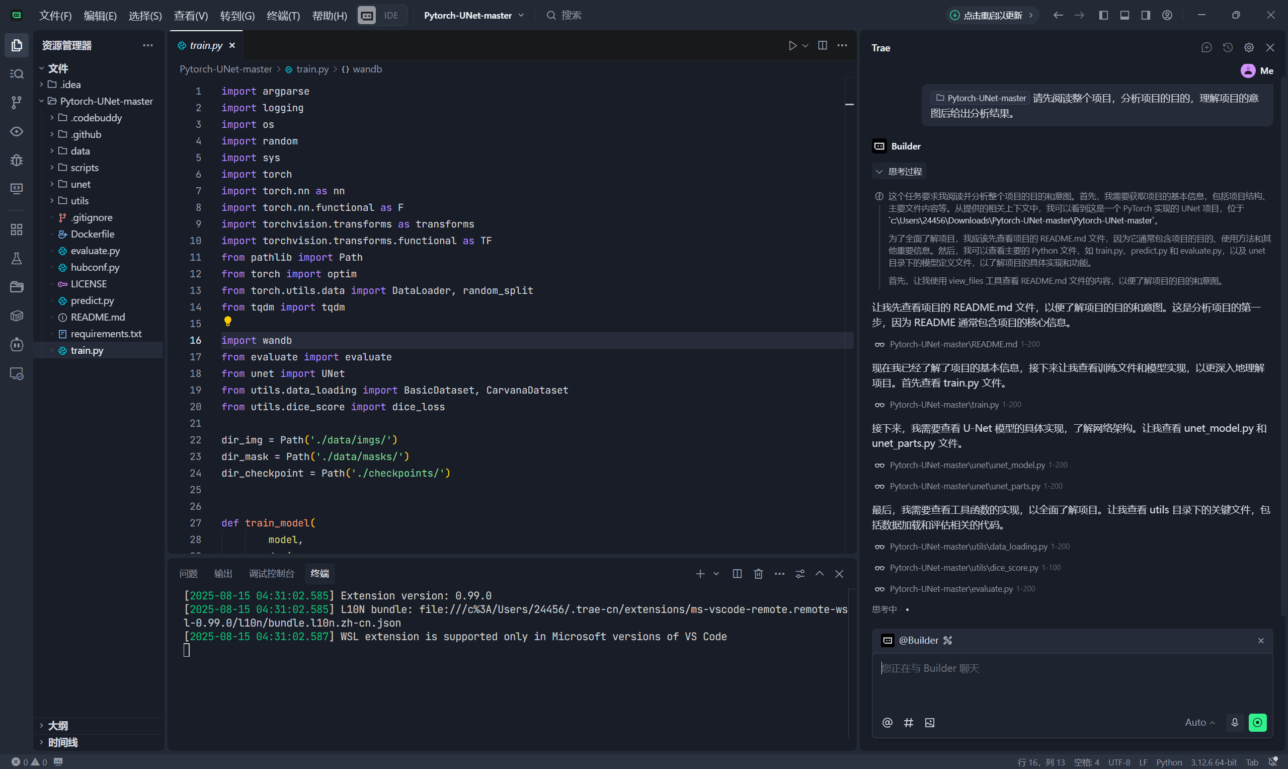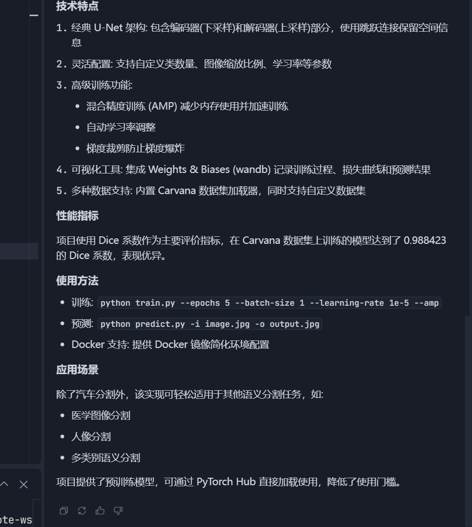 0x01 :首先,进行项目理解 测试,所使用的项目是pytorch-UNet,使用的prompt为:请先阅读整个项目,分析项目的目的,理解项目的意图后给出分析结果。