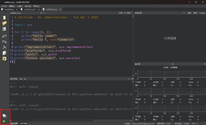 至此,我们就成功的使用 K230 在线运行了一个程序了。