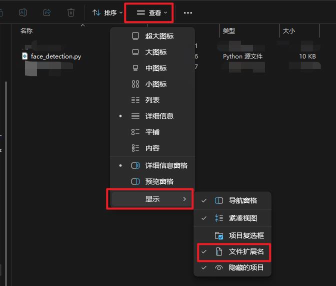 你可能看到的文件名是 face_detection,(没有.py)是因为你的电脑系统中没有设置显示文件扩展名
