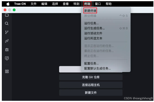 在顶部菜单栏依次点击 终端 > 新建终端,打开内置命令行。
