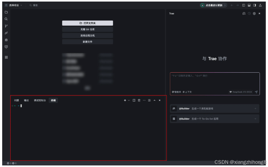 在本地新建一个空文件夹,在 Trae IDE 中打开该文件夹。