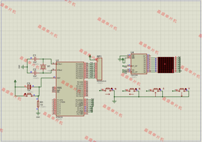 1、采用8*8点阵作为贪吃蛇游戏的显示装置;