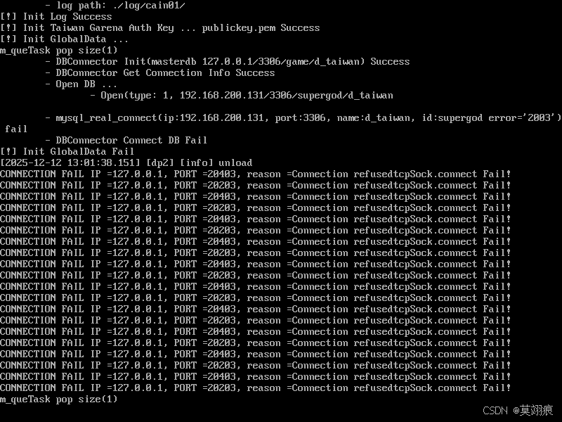 关键报错 : DNF CONNECTION FAIL IP =127.0.0.1, PORT =20403, reason =Connection refusedtcpSoc mysql_real_connect ... error='2003'