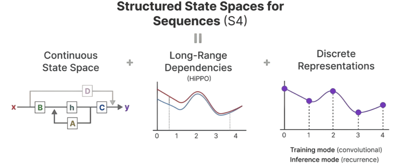 S4引入了一种新型参数化方法,能够高效地在连续状态空间表示、长程依赖表示、快速离散表示这三种表征之间切换,在多种任务的训练和推理过程中均保持高效,并在长序列处理方面表现出色。