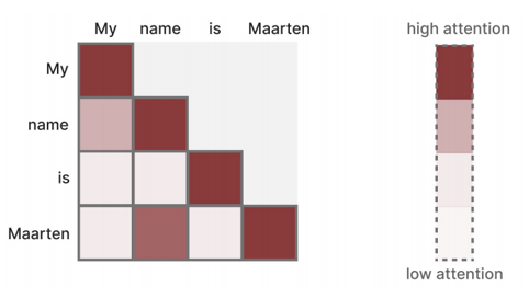 对于该句子中的4个Token,模型会同时将它们转化为 Query、Key、Value 矩阵,然后一次性计算所有Token之间的注意力分数。