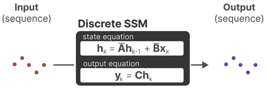 SSM是一种用于描述系统状态,并能根据特定输入预测其下一状态的模型。考虑到输入一般都是连续的,它的一般表示是连续化形式,如下图所示: