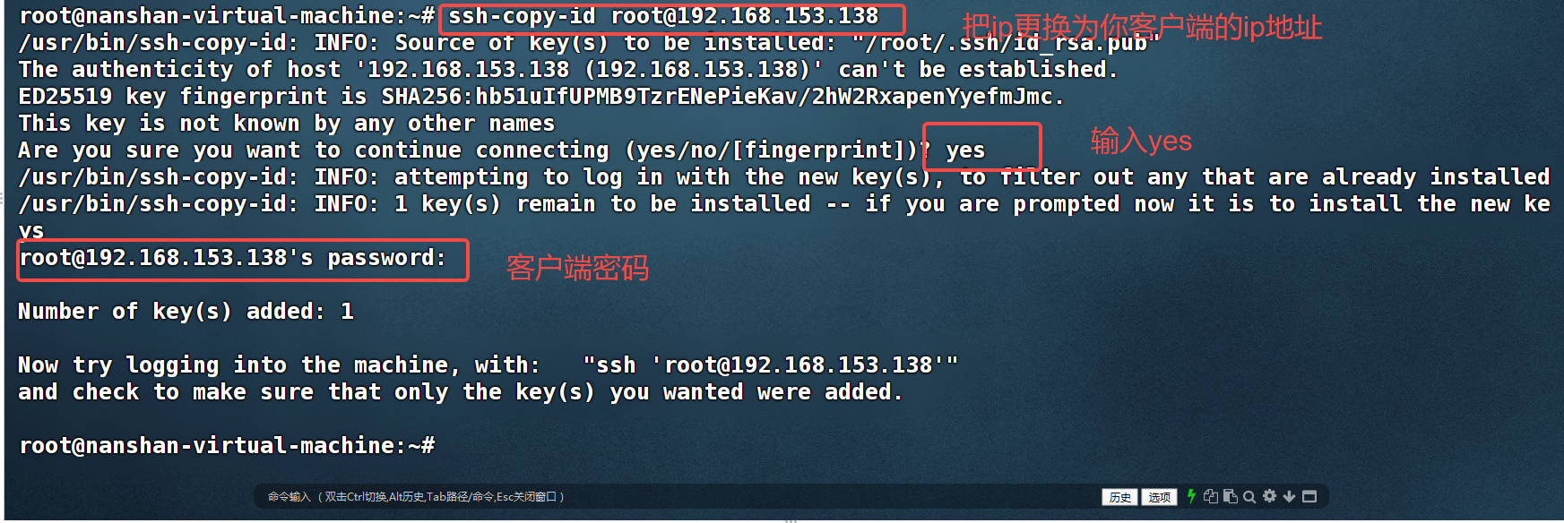 要想ansible可以控制多个客户端,必须让安装ansible的server端可以免密登录客户端