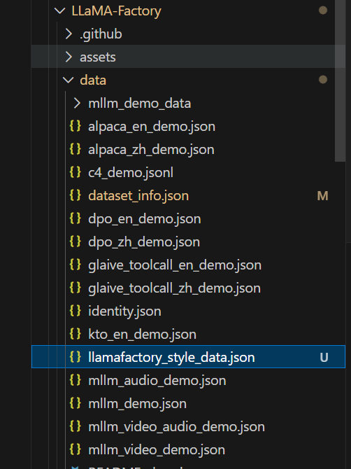 /root/autodl-tmp/LLaMA-Factory/data,煮饱这里自己准备了名称为llamafactory_style_data的数据集