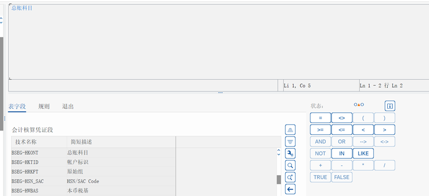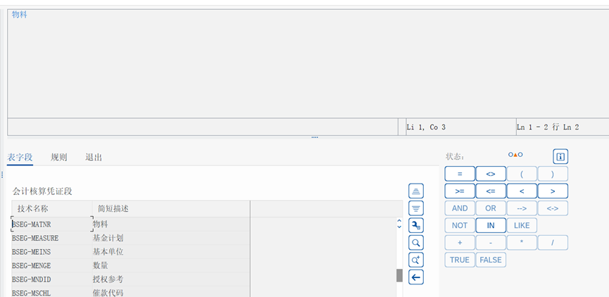 科目可以使用LIKE,但是MATNR不能使用LIKE,可以通过选择字段后LIKE是否可选确定