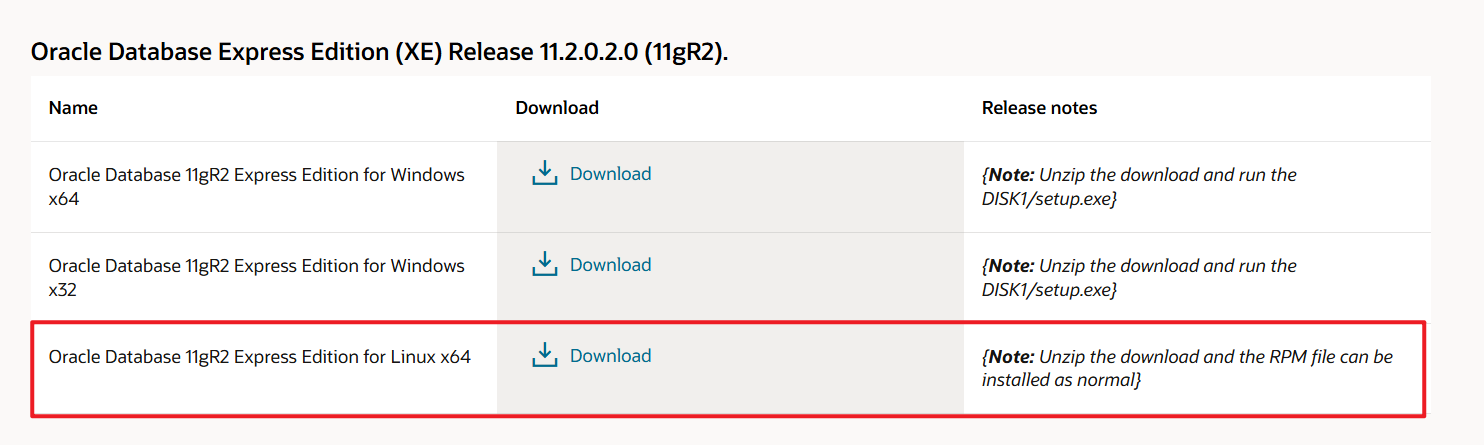 unzip oracle-xe-11.2.0-1.0.x86_64.rpm.zip