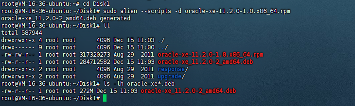 sudo alien --scripts -d oracle-xe-11.2.0-1.0.x86_64.rpm