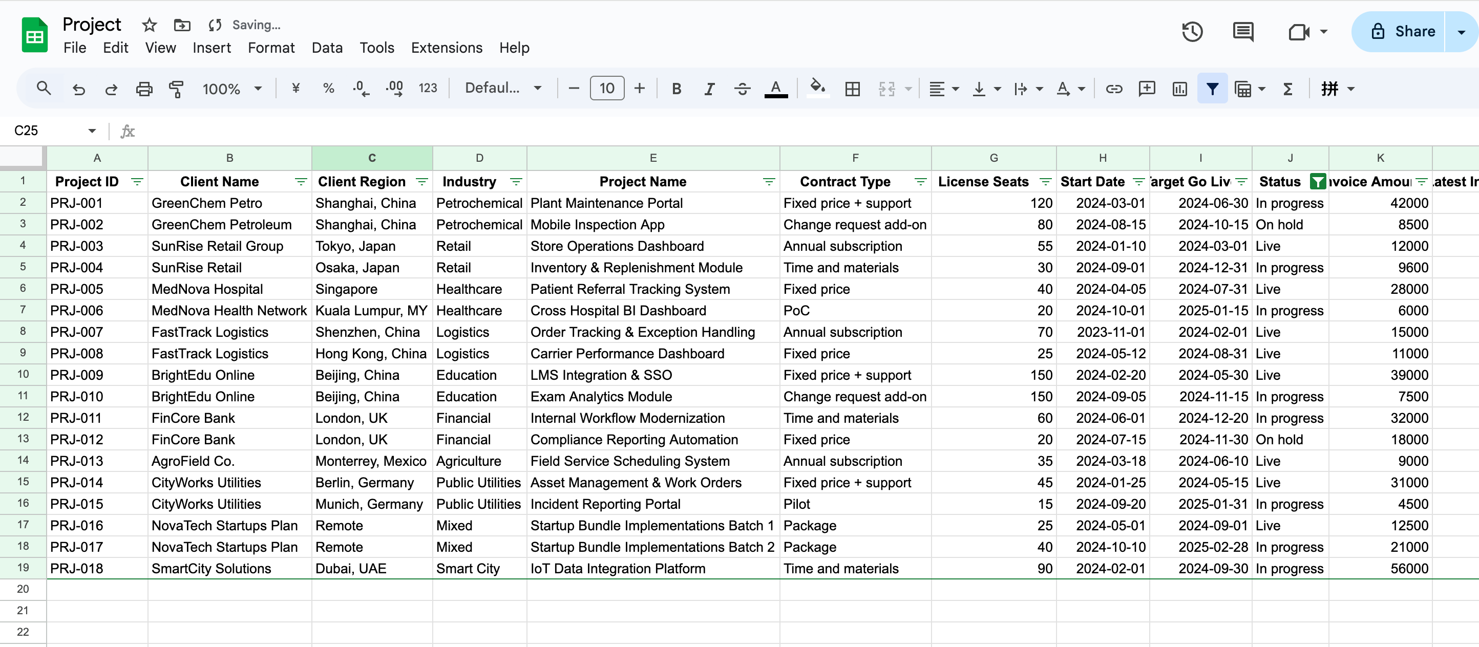 最早,这张表只是想简单记录一下客户和项目的基本信息,后来要因为信息增加,又在后面继续添加列。