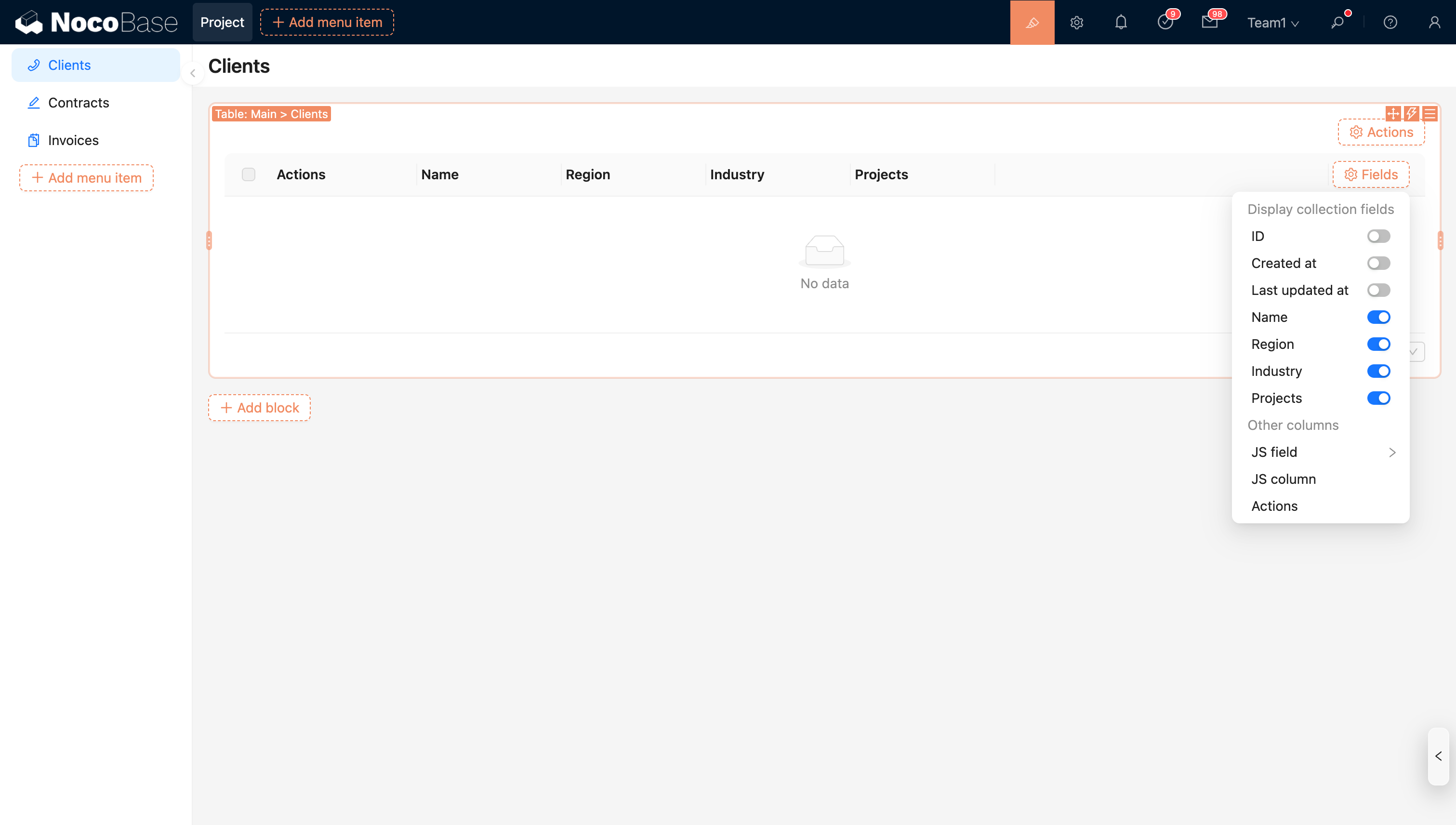只要选好数据表,NocoBase 就会自动生成一个干净、可交互的界面,你还可以继续调整列顺序、筛选条件、显示方式等细节。把 Excel 的数据模型化之后,信息可视化变得非常轻松。