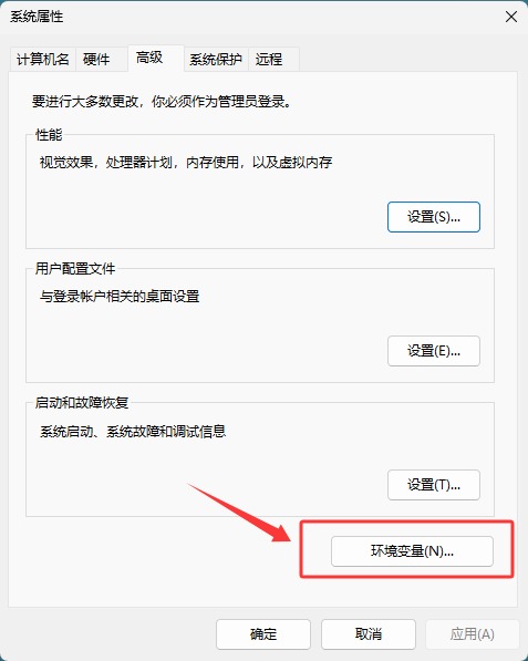 - 在系统属性窗口中,点击 "环境变量" 按钮: